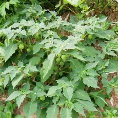 浆果球状,直径约2-2.5厘米,初时绿白色,具绿色花纹,成熟时淡黄色,宿萼上具纤毛及细直刺,后逐渐脱落;种子淡黄色,近倒卵形,扁平,直径约2.5毫米。花期春夏,果熟期冬季。 [2-3]