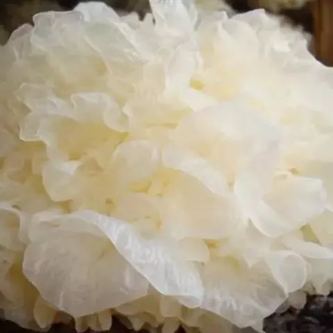 银耳为门担子菌门真菌银耳的子实体,银耳是由10余片薄而多皱褶的扁平形瓣片组成。银耳子实体纯白至乳白色,一般呈菊花状或鸡冠状,直径5~10厘米,柔软洁白,半透明,富有弹性,由数片至组成,形似菊花形、牡丹形或绣球形,直径3~15厘米。