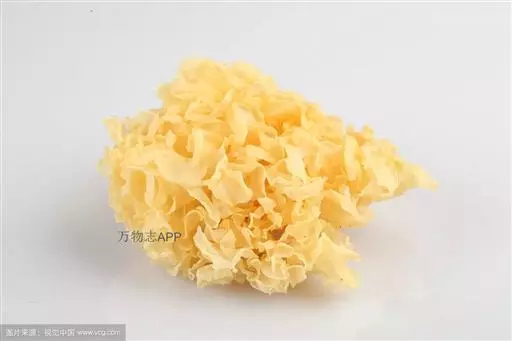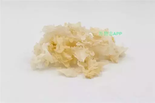 而普通的银耳就差一些了。颜色虽然也白,但是白色中略带米黄色,看上去虽然也是完整的一朵,但肉却略薄。