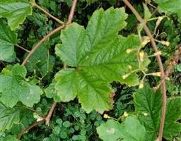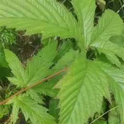 叶为羽状复叶,有小叶2对,叶柄被短柔毛或近无毛,顶生小叶特别大,5-9掌状深裂,裂片披针形至菱状披针形,顶端渐狭或三角状渐尖,边缘常有小裂片和尖锐重锯齿,上面绿色无毛,下面密被白色绒毛,侧生小叶较小,3-5裂,裂至小叶1/2-1/3处;托叶大,草质,绿色,半心形,边缘有尖锐锯齿。