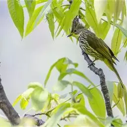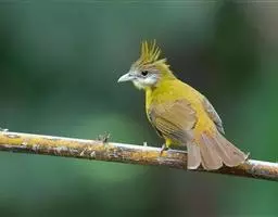 纹喉鹎:体长19厘米,是一种中等体型的偏绿色鹎。特征为头顶、脸颊、颏及喉均具黄色条纹。上体橄榄绿色。…