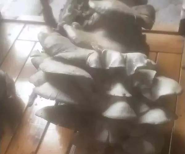 平菇的大脚菇:子实体菌盖极小,菌柄粗长。这主要是缺氧、通风不良造成的。只要加强通风,注意光线即可防止。