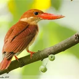 赤翡翠:是佛法僧目翠鸟科的鸟类。共有10个亚种。体长25-27厘米,体重76-77 克。…