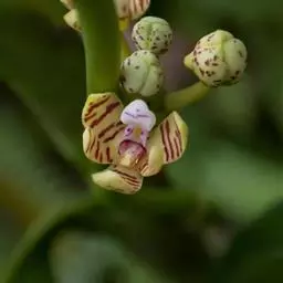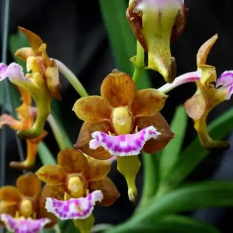 五唇兰:又称五舌兰,叶丛生,肉质状。基部关节明显,无明显茎。花葶抽生于基部,疏生十余朵小花,花为紫…