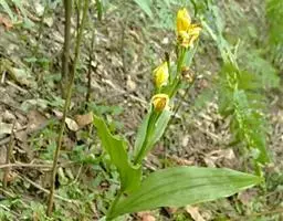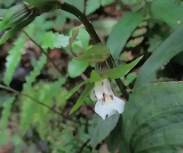 吻兰(学名:Collabium chinense (Rolfe) Tang et Wang):假鳞茎细圆柱形,貌似叶柄,基部稍扩大并多少贴伏于根状茎上,被鞘。叶纸质。花葶长14-18厘米,无毛,被2-4枚膜质筒状鞘;总状花序长4-7厘米,疏生4-7朵花;花中等大;萼片和花瓣绿色;花瓣长圆形,与萼片等长而稍狭,先端渐尖;唇瓣白色,倒卵形,长约9毫米,基部具爪,3裂。花期7-11月。