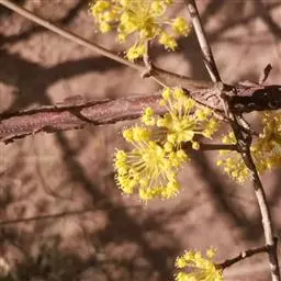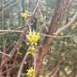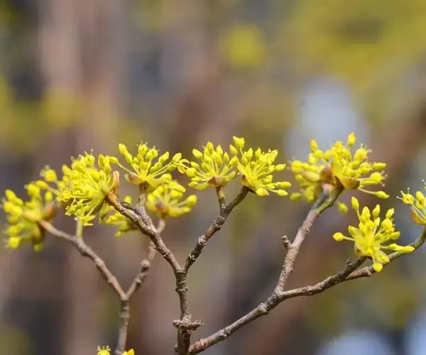 山茱萸(学名:Cornus officinalis Sieb. et Zucc.)落叶乔木或灌木;树皮灰褐色;小枝细圆柱形,无毛。叶对生,纸质,上面绿色,无毛,下面浅绿色;叶柄细圆柱形,上面有浅沟,下面圆形。伞形花序生于枝侧,总苞片卵形,带紫色;总花梗粗壮,微被灰色短柔毛; 花小,两性,先叶开放;花萼阔三角形,无毛;花瓣舌状披针形,黄色,向外反卷;雄蕊与花瓣互生,花丝钻形,花药椭圆形;花盘无毛;花梗纤细。核果长椭圆形,红色至紫红色;核骨质,狭椭圆形,有几条不整齐的肋纹。花期3-4月;果期9-10月。