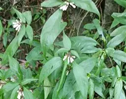 药材性状:本品全体长10cm~20cm,少有长30cm者。茎圆柱形,基部节上具少数须根,幼枝具棱,红色。叶对生,红色或淡红紫色,多皱缩,展开后呈狭卵形、卵形或长椭圆状卵形,长2.5cm~8cm,宽1.5cm~3.2cm,具长1cm~3cm的纤细叶柄。聚伞花序顶生,总梗长2cm~5cm,二歧分枝,分枝短;花冠筒状漏斗形,5裂。蒴果扁倒三角形,状似菱角,红紫色。气无,味淡。以枝条粗壮、叶多、色淡红紫色者为佳。