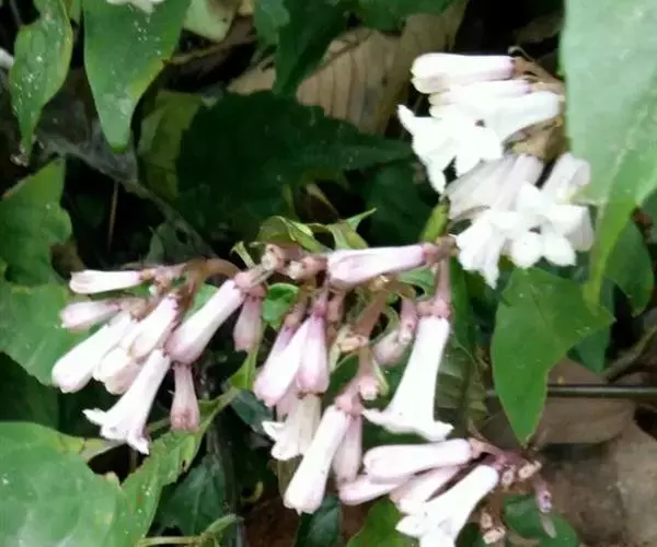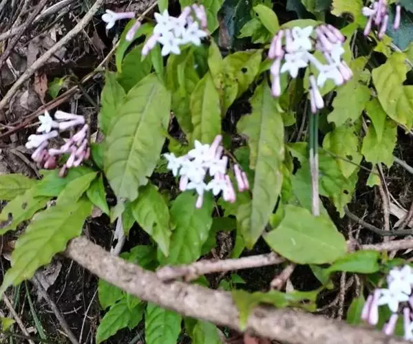花序顶生,有花多朵,总梗长通常1-2厘米,多少被柔毛,分枝通常短,螺状;花二型,花柱异长;长柱花:花梗长1-2毫米,常被短柔毛;小苞片披针状线形或线形,长4-6毫米,渐尖,近无毛或被稀疏缘毛;萼近无毛或被短柔毛,萼管近陀螺状,长约1.3毫米,宽约1.4毫米,有5棱,裂片三角形或近披针形,长0.7-1.2毫米;花冠白色或粉红色,近漏斗形,外面无毛,管长1-1.3厘米,喉部扩大,里面被短柔毛,裂片5,三角状卵形,长2.5-3毫米,顶端内弯,喙状,里面被鳞片状毛,背面有翅,翅的顶部向上延伸成新月形;雄蕊5,着生在冠管中部之下,花丝无毛,长2-2.5毫米,花药线形,长2.5-3毫米;花柱长9-11毫米,被疏柔毛,柱头2裂,裂片近圆形或阔卵形,长约1毫米,不伸出;短柱花:花萼和花冠同长柱花;雄蕊生喉部下方,花丝长2-2.5毫米,花药长2.5毫米,不伸出;花柱长约3毫米,柱头裂片披针形,长约3毫米。