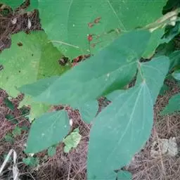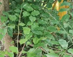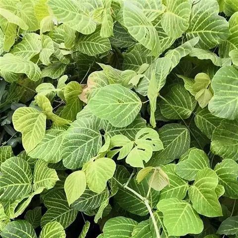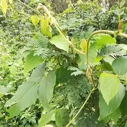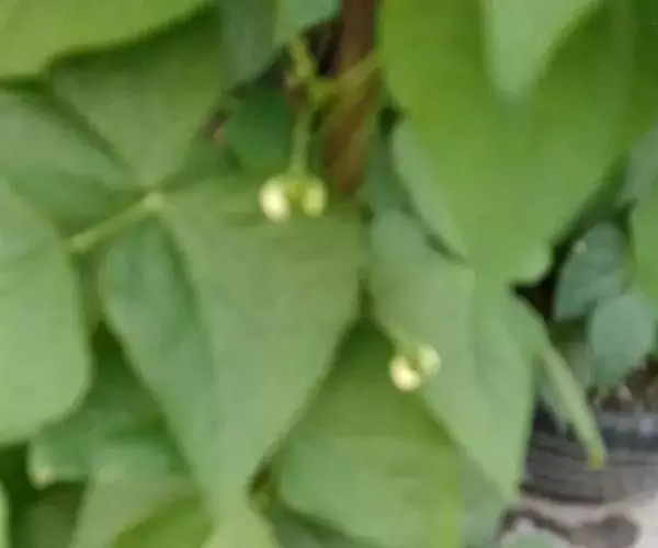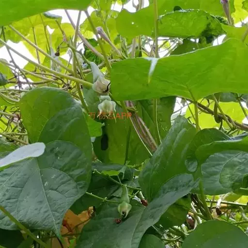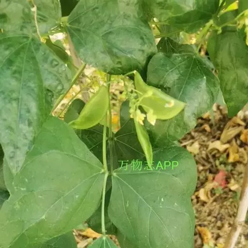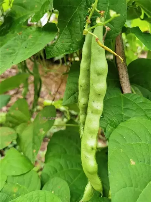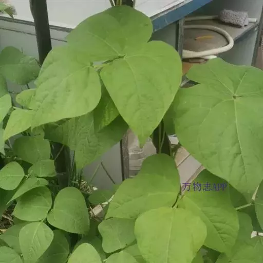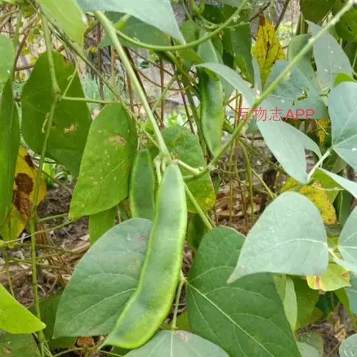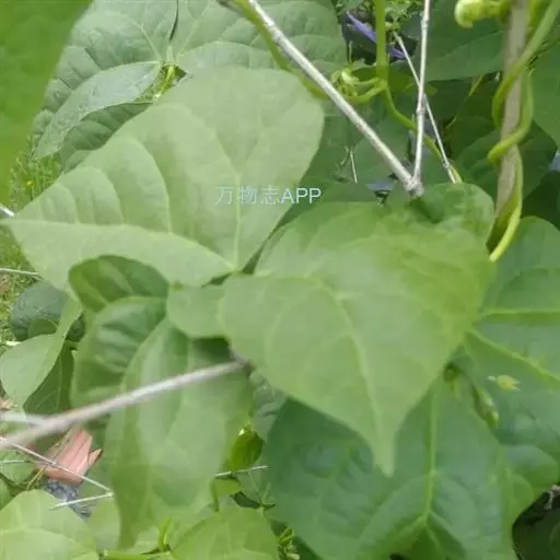 菜豆 一年生缠绕或近直立草本。茎被短柔毛或老时无毛。羽状复叶具3小叶;托叶披针形,长约4毫米,基着。小叶宽卵形或卵状菱形,侧生的偏斜,长4-16厘米,宽2.5-11厘米,先端长渐尖,有细尖,基部圆形或宽楔形,全缘,被短柔毛。