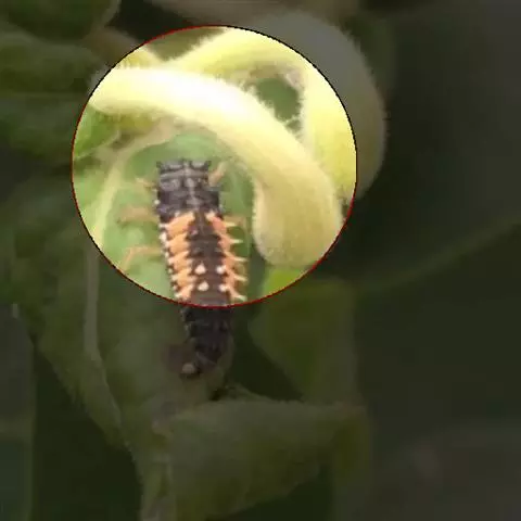 为害特征常卷叶为害或蛀入豆荚内取食幼嫩的种粒,荚内及蛀孔外堆积粪粒。