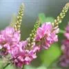 总状花序比叶短,有数朵生于花序顶部的花;花梗长5-8毫米;小苞片卵形,有数条隆起的脉,约与花萼等长或稍较其为长,宿存;花萼杯状,长3-4毫米,上方的2枚裂片连合成一微凹的裂片;花冠白色、黄色、紫堇色或红色;旗瓣近方形,宽9-12毫米,翼瓣倒卵形,龙骨瓣长约1厘米,先端旋卷,子房被短柔毛,花柱压扁。荚果带形,稍弯曲,长10-15厘米,宽1-1.5厘米,略肿胀,通常无毛,顶有喙;种子4-6,长椭圆形或肾形,长0.9-2厘米,宽0.3-1.2厘米,白色、褐色、紫色或有花斑,种脐通常白色。花期春夏。