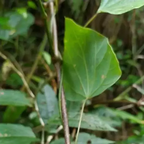 稍木质的藤本;茎枝纤细,有直线纹,嫩部被微柔毛。叶纸质,近戟形或箭形,长6-12.5厘米…