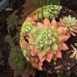 红化妆除夏季暴晒及冬季0度以下时期外可尝试露天养护。夏季没有明显休眠期,但暴晒时需适当遮阴,忌淋雨或在;冬季可栽培阳光充足的室内,不低于5℃。浇水时注意不要使叶面和叶心积水,以免增加腐烂或晒伤的风险。春秋季时温差较大,此时若给予红化妆长时间日照(六小时左右或以上),叶缘及叶背上沿会变成红色,叶色变化从黄绿至微红不等。光照不足的情况下,红化妆叶片的红缘会消失,发生徒长,叶片松散、间距拉长,叶片下翻、变薄、变绿,使植株观赏价值降低。