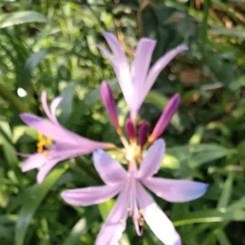 长筒石蒜草本,地生。鳞茎卵球形;叶披针形;伞形花序,有花5-7朵,花白色;花被裂片腹面稍有淡红色条纹,…