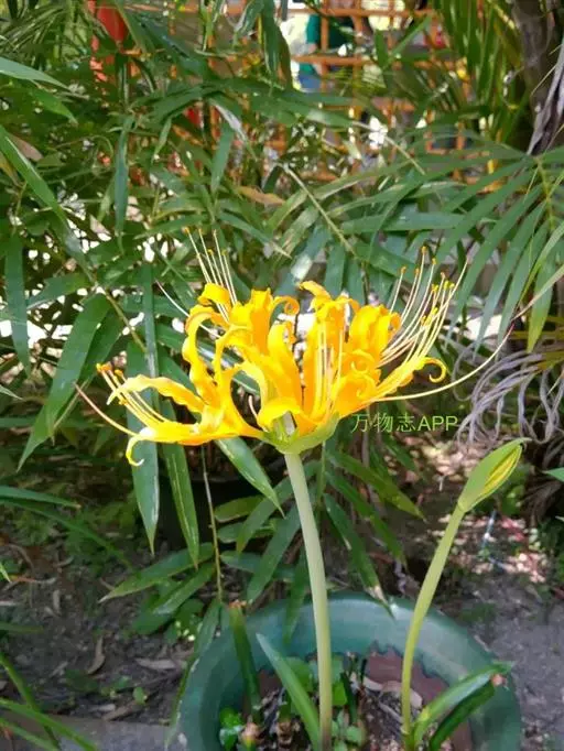 中国石蒜草本,地生。植株无毛,叶带状,顶端圆;伞形花序,花黄色;花被裂片背面具淡黄色中肋,倒披针形…