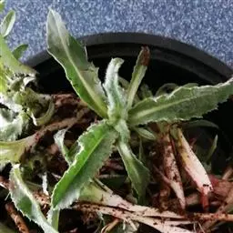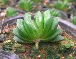 株高可达12厘米,叶片呈莲座状,叶上有小白色斑点和白色软刺,叶缘具细锯齿,深绿色,花橙红色,花期在秋季。