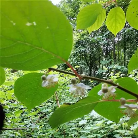 软枣猕猴桃 Planch. ex Miq.)是猕猴桃科、猕猴桃属大型落叶藤本植物;小枝基本无毛或幼嫩时星散地薄被柔软绒毛或茸毛,叶膜质或纸质,卵形、长圆形、阔卵形至近圆形,顶端急短尖,基部圆形至浅心形,背面绿色,花序腋生或腋外生,苞片线形,花绿白色或黄绿色,芳香,萼片卵圆形至长圆形,花瓣楔状倒卵形或瓢状倒阔卵形,花丝丝状,花药黑色或暗紫色,长圆形箭头状,果圆球形至柱状长圆形,长2~3厘米,成熟时绿黄色或紫红色。种子纵径约2.5毫米。该种分化强烈,分布广阔。中国从最北的黑龙江岸至南方广西境内的五岭山地都有分布。生于混交林或水分充足的杂木林中。果药用,为强壮、解热及收敛剂;又是营养价值很高的食品。果既可生食,也可制果酱、蜜饯、罐头、酿酒等。花为蜜源,也可提芳香油。该种既可作为观赏树种,又可作为果树。(概述图参考来源:中国自然