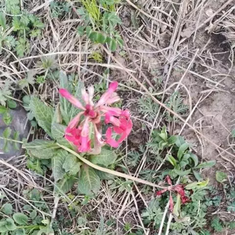 多年生草 本。根状茎粗短,具多数纤维状须根。开花期叶丛基部有少数鳞片;鳞片卵形至矩圆形,长1.5-3厘米,先端钝,背面褐色,腹面常被乳黄色粉。叶矩圆状倒卵形至倒卵形,连柄长4-10厘米,宽1-3厘米,先端圆形,基部渐狭成具宽翅的短柄,边缘具不整齐的锐尖牙齿,无粉或有时下面微被黄粉,中肋稍宽,侧脉6-10对,纤细,在下面显著;花后叶增大,呈倒卵形至倒卵状椭圆形,长6-17厘米,宽4-7.5厘米,边缘多少呈浅裂状;叶柄极短或长达叶片的1/2。初花期花葶约与叶柄等长,疏被小腺体,后渐伸长,至果期长可达29厘米;伞形花序5-l6花,稀仅2 4花;苞片三角形至卵状三角形,长3-6(8)毫米;花梗长1.5-2.5厘米,果期长可达3厘米,被小腺体或微被粉;花萼钟状,长6-7毫米,被粉质腺体或淡黄色粉,果期稍增大成杯状,分裂达中部,裂片卵形至三角形,先端锐尖或钝;花冠淡蓝色与淡玫瑰红色,冠筒长11-13毫米,冠檐直径 1.5-2厘米,裂片阔倒卵形,先端具深凹缺;长花柱花:雄蕊近冠筒中部着生,花柱微高出筒口;短花柱花:雄蕊着生于冠筒上部,花药微露出筒口,花柱稍短于花萼。蒴果近球形,直径4-5毫米。花期4月,果期5月。 [2-3]