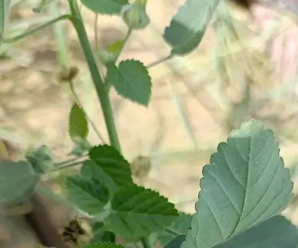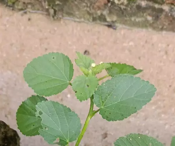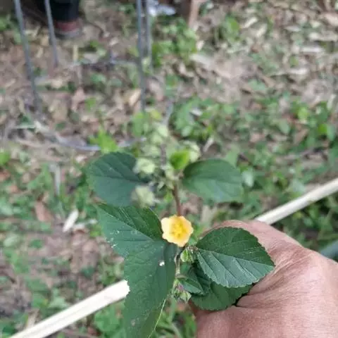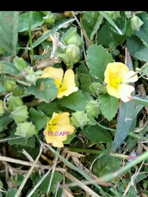 心叶黄花稔(Sida cordifolia L.),锦葵科、黄花稔属植物,分布于中国台湾、福建、广东、广西、四川和云南等省区。亚洲和非洲热带和亚热带地区也有。生于山坡灌丛间或路旁草丛中。