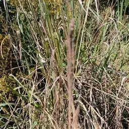 圆锥花序稠密,长20厘米,宽达3厘米,小穗长4.5-5(-6)毫米,基盘具长12-16毫米的丝状柔毛;两颖草质及边缘膜质,近相等,具5-9脉,顶端渐尖或稍钝,常具纤毛,脉间疏生长丝状毛,第一外稃卵状披针形,长为颖片的2/3, 透明膜质,无脉,顶端尖或齿裂,第二外稃与其内稃近相等,长约为颖之半,卵圆形,顶端具齿裂及纤毛;雄蕊2枚,花药长3-4毫米;花柱细长,基部多少连合,柱头2,紫黑色,羽状,长约4毫米,自小穗顶端伸出。