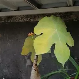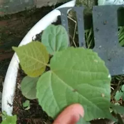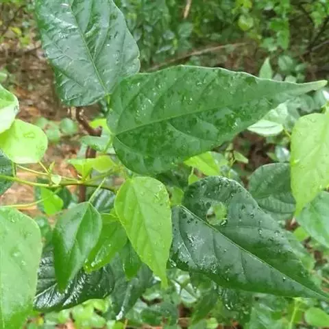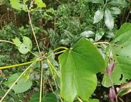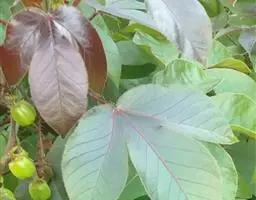 叶阔卵形,长8-20cm,宽6-18cm,顶端短尖至渐尖,基部心形至截平,全缘或2-5裂。裂缺常有杯状腺体,两面初被短柔毛,成长叶仅下面基部沿脉被短柔毛,掌状脉5条;叶柄长7-17cm,无毛,顶端有2枚具柄的杯状腺体。