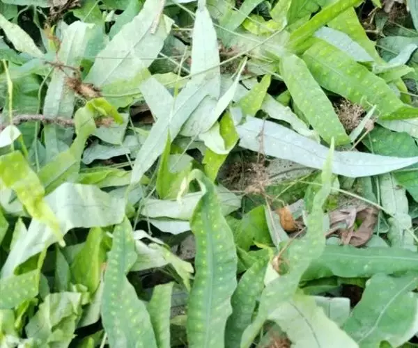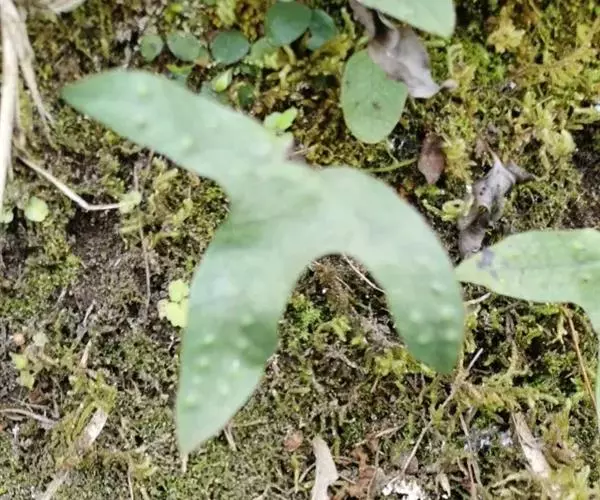 金鸡脚假瘤蕨土生植物,根状茎长而横走,粗约3毫米,密被鳞片;叶片为单叶,形态变化极大,单叶不分裂,或戟状二至三分裂;叶纸质或草质,背面通常灰白色,两面光滑无毛。
