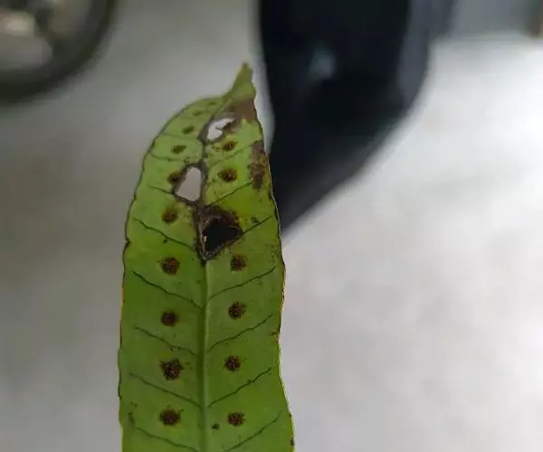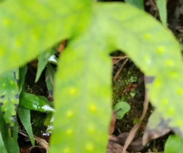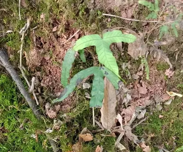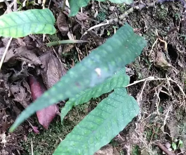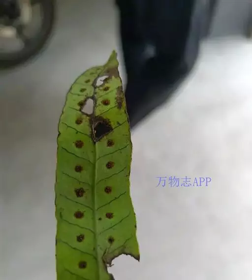 鳞片披针形,长约5毫米,棕色,顶端长渐尖,边缘全缘或偶有疏齿。叶远生;叶柄的长短和粗细均变化较大,长约在2-20厘米,直径约在0.5-2毫米范围,禾秆色,光滑无毛。叶片为从卵圆形至长条形,长约2-20厘米,宽1-2厘米,顶端短渐尖或钝圆,基部楔形至圆形;分裂的叶片其形态也极其多样,裂片或长或短,或较宽,或较狭,但通常都是中间裂片较长和较宽。叶片 (或裂片) 的边缘具缺刻和加厚的软骨质边,通直或呈波状。中脉和侧脉两面明显,侧脉不达叶边;小脉不明显。孢子囊群大,圆形,在叶片中脉或裂片中脉两侧各一行,着生于中脉与叶缘之间;孢子表面具刺状突起 。