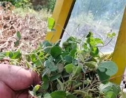 【症状特点】毛豆霜霉病主要危害叶片,毛豆叶面出现黄白色至黄色不规则小斑,相应的叶背出现灰色疏松霉层病征(孢囊梗及孢子囊),严重时叶片干枯脱落病菌以卵孢子在病残体上或毛豆种子上越冬。翌年条件适宜时,卵孢子萌发产生孢子囊,孢子囊释出游动孢子,借助雨水溅射传播,从胚茎侵入,形成系统侵染。发病后病叶上形成新的孢子囊,萌发释出游动孢子,又借助风雨传播蔓延,在生长季节中,再次侵染多次发生,病害得以蔓延。通常气温在20-24℃而又多雨高湿的天气,病害容易流行。