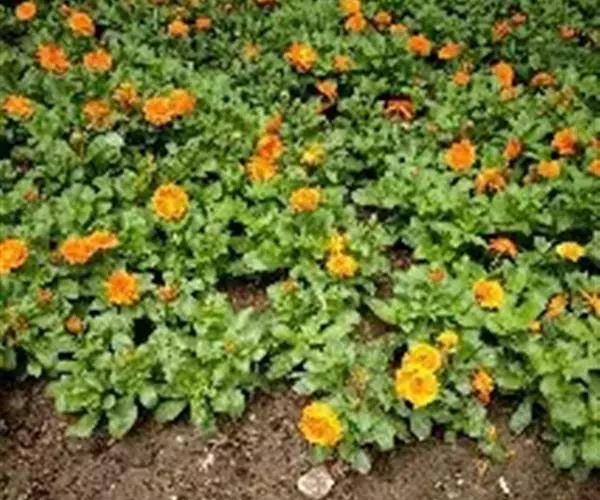 金盏菊植株矮生,花朵密集,花色鲜艳夺目,花期长,多用于花坛、花带、花镜的配置材料,也可作为草地镶边植物,是早春园林和城市中最常见的草本花卉。