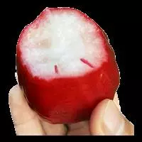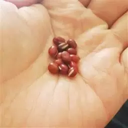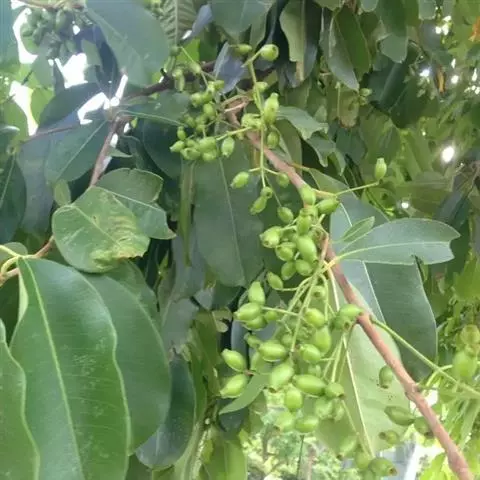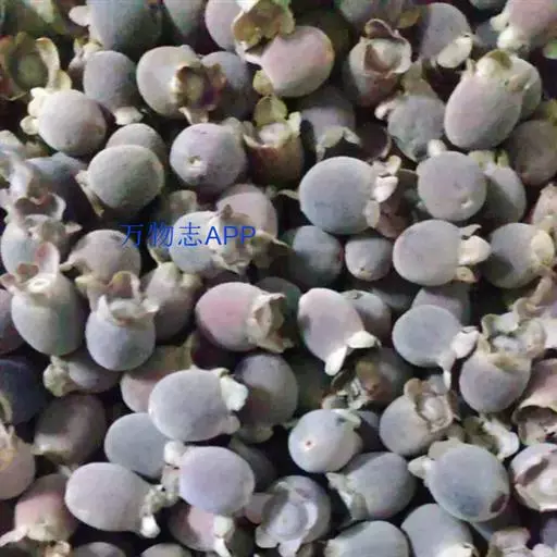 果实长圆球形,一端稍尖,直径约1cm,表面土黄色或暗绿褐色,质较硬,顶端有宿存萼片5枚及花柱残基。内有种子多数,黄白色,扁平。味淡、微甜,气微香。以个大、干燥者为佳。