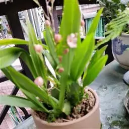上盆(或翻盆)时间一般在春季3-4月或秋季10-11月。花盆以口小、盆深、底孔大的为佳。新从山上挖来的野生苗需理植于瓦盆(泥盆)中,这样兰花泥易干,通气性好.容易发根;2-3年后方可换人紫砂盆或瓷盆。兰花种植(在盆中)的方法与一般花卉不同,尤其是名种兰花,翻种移盆必须洗根。方法足将根浸入清水中,用旧牙刷或毛笔轻轻洗刷,切勿用力过大伤根;用剪刀将残叶、黄叶、断裂根、发黑腐烂根剪去,注意勿伤幼芽。然后将处理好的植株放在阴凉通风处晾干,待根部发白并显细小皱纹柔软时,再植入盆中。