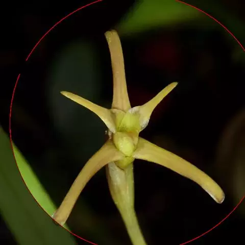 花瓣线状披针形或近线形,长约0.8毫米,宽约0.3毫米;唇瓣位于下方,近披针状三角形或舌状,长约0.7毫米,中部宽约0.6毫米,先端近渐尖,基部两侧有一对横向伸展的耳;耳线形或狭长圆形,长6-7毫米,宽2-3毫米,通常直立;蕊柱粗短,长约0.3毫米。花期4月。