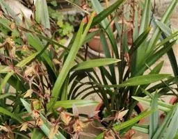 终年都有,高温多雨季节更为猖撅,而以建兰感染尤多。病斑先从叶尖向根茎处延伸,初为褐色,然后逐渐扩大增多,出现许多干黑点,严重时导致整株死亡。防治方法:除积极改菩环境条件外,在发病期内,可先用50%甲基托布津可湿性粉剂800-1500倍液喷治,每7-10天一次;然后再辅以1%等量式波尔多液,每半月一次,连续喷3-5次。
