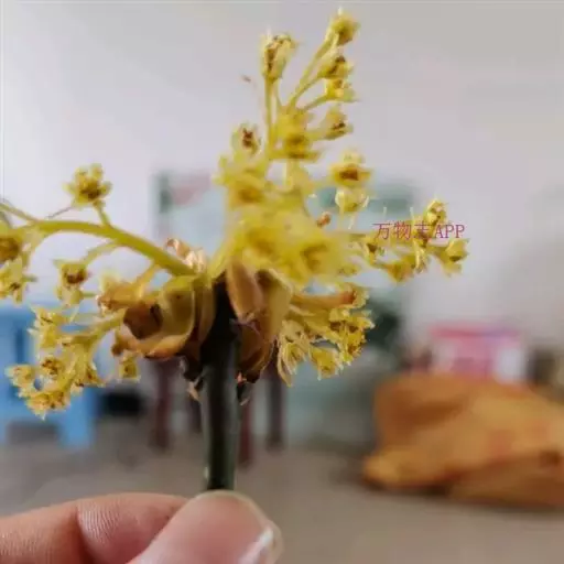 花序顶生,先叶开放,长4-5厘米,多花,具梗,梗长不及1厘米,与序轴密被棕褐色柔毛,基部承有迟落互生的总苞片;苞片线形至丝状,长1-8毫米,位于花序最下部者最长。花黄色,长约4毫米,雌雄异株;花梗纤细,长4.5-6毫米,密被棕褐色柔毛。雄花:花被筒极短,花被裂片6,披针形,近相等,长约3.5毫米,先端稍钝,外面疏被柔毛,内面近于无毛;能育雄蕊9,成三轮排列,近相等,长约3毫米,花丝扁平,被柔毛,第一、二轮雄蕊花丝无腺体,第三轮雄蕊花丝近基部有一对具短柄的腺体,花药均为卵圆状长圆形,4室,上方2室较小,药室均内向,退化雄蕊3,长1.5毫米,三角状钻形,具柄;退化雌蕊明显。雌花:退化雄蕊12,排成四轮,体态上类似雄花的能育雄蕊及退化雄蕊;子房卵珠形,长约1毫米,无毛,花柱长约1.2毫米,等粗,柱头盘状。果近球形,直径达8毫米,成熟时蓝黑色而带有白蜡粉,着生于浅杯状的果托上,果梗长1.5-2厘米,上端渐增粗,无毛,与果托呈红色。花期3-4月,果期5-9月。