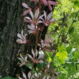 飞龙掌血 老茎干有较厚的木栓层及黄灰色、纵向细裂且凸起的皮孔,三、四年生枝上的皮孔圆形而细小,茎枝及叶轴有甚多向下弯钩的锐刺,当年生嫩枝的顶部有褐或红锈色甚短的细毛,或密被灰白色短毛。小叶无柄,对光透视可见密生的透明油点,揉之有类似柑橘叶的香气,卵形,倒卵形,椭圆形或倒卵状椭圆形。长5-9厘米,宽2-4厘米,顶部尾状长尖或急尖而钝头,有时微凹缺,叶缘有细裂齿,侧脉甚多而纤细。花梗甚短,基部有极小的鳞片状苞片,花淡黄白色;萼片长不及1毫米,边缘被短毛;花瓣长2-3.5毫米;雄花序为伞房状圆锥花序;雌花序呈聚伞圆锥花序。果橙红或朱红色,径8-10毫米或稍较大,有4-8条纵向浅沟纹,干后甚明显;种子长5-6毫米,厚约4毫米,种皮褐黑色,有极细小的窝点。花期几乎全年,在五岭以南各地,多于春季开花,沿长江两岸各地,多于夏季开花。果期多在秋冬季 。