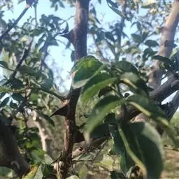 沙田柚,芸香科柑橘属乔木。树干较高,枝叶繁茂,嫩枝扁且有棱,叶质颇厚且为浓绿色,…
