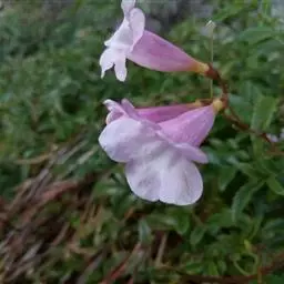 粉花凌霄 K.Schum.)是紫葳科魔盒凌霄属的落叶藤本植物。奇数羽状复叶对生,小叶全缘,…