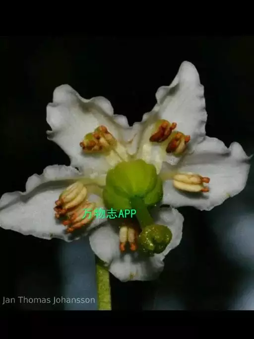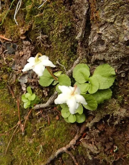 常绿草本状矮小半灌木,高4-17厘米;根茎细,线状,横生,有分枝,生不定根及地上茎。叶对生或近轮生于茎基部,薄革质,圆卵形或近圆形,长0.9-1.5(-2.2)毫米,宽几与长相等,先端圆钝,基部近圆形或宽楔形并稍下延于叶柄,边缘有锯齿,上面绿色,下面淡绿色;叶柄较叶片短近2倍,长4-8毫米。花葶有狭翅,有1-2枚鳞片状叶,卵形,兜状,长3-4毫米,宽2.5-3毫米,边缘有细缘毛。花单生于花葶顶端,花冠水平广开展,碟状,直径1.5-2.5厘米,下垂,白色,具芳香;萼片卵圆形或卵状椭圆形,长约2-2.5毫米,较花瓣短约3-4倍以上,先端近圆头或钝头状,边缘有细缘毛,绿色或淡绿白色;花瓣卵形,长7-10毫米,宽4-7毫米;雄蕊10,每2与花瓣对生,花丝细长,无毛,花药有较长的小角,在顶端孔裂,黄色;花柱直立,长3.5-5毫米,柱头头状,5裂。蒴果近球形,直径6-8毫米,由基部向上5瓣裂,裂瓣边缘无蛛丝状毛。花期7-8月;果期8月。
