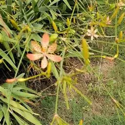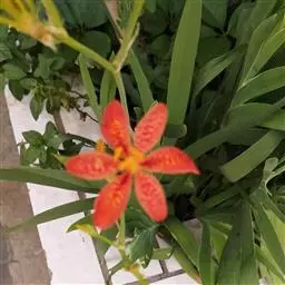 虎皮花(Tigridia pavonia (L. f.) Ker-Gawl.)球根花卉,高40~60厘米。球茎圆锥形。 叶片剑形。花梗自叶丛中抽出,花正面为三角形,花瓣6枚,外轮3瓣大,红色、黄色、橙色、粉色或白色,内轮3瓣较小并具洋红色、紫色或赤褐色斑点。花期6~7月。