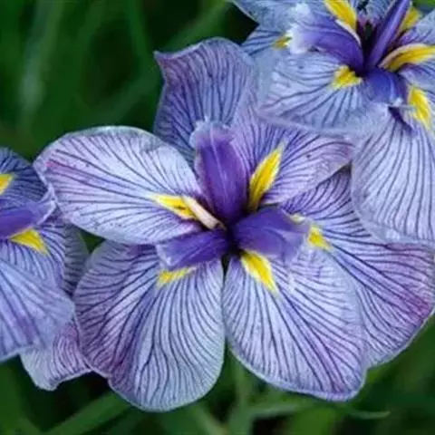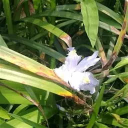 花菖蒲:是玉蝉花的变种。多年生宿根挺水型水生花卉。根状茎短而粗,须根多并有纤维状枯叶梢,叶基生,线…