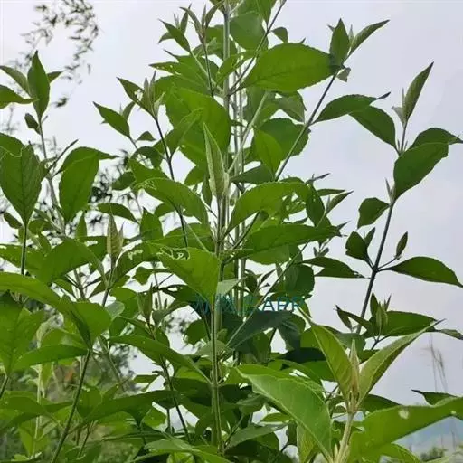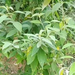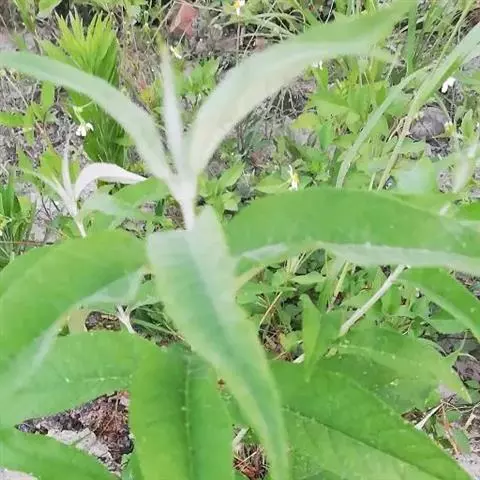 叶对生,萌芽枝条上的叶为互生或近轮生,叶片膜质,卵形、椭圆形至长圆状披针形,长3-11厘米,宽1-5厘米,顶端渐尖,基部宽楔形至圆形,边缘全缘或具有波状齿,上面深绿色,幼时被星状短柔毛,后变无毛,下面灰黄绿色;侧脉每边6-8条,上面扁平,干后凹陷,下面略凸起;叶柄长2-15毫米。