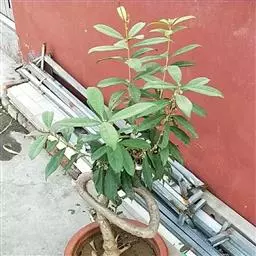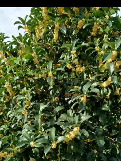 为常绿阔叶大乔木,高可达15米,树冠可覆盖400平方米,桂花实生苗有明显的主根,根系发达深长。幼根浅黄褐色,老根黄褐色。嫁接苗的根系因砧木而异;插条埋入土中各处易生不定根,但无明显主根。桂花分枝性强且分枝点低,特别在幼年尤为明显,因久常呈灌木状。密植或修剪后,则可成明显主干。树皮粗糙,灰袍色或灰白色,有时显出皮孔。叶面光滑,革质,近轴面暗亮绿色,远轴面色较淡;椭圆形,长椭圆形、卵形、倒卵形,披针形、倒披针形、长披针形至卵披针形。