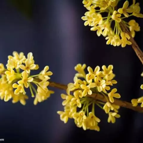 金桂花朵为金黄色,且气味较丹桂要淡一些,叶片较厚。金桂秋季开花,花色主要以黄色为主(柠檬黄与金黄色)。其中金桂又分为球桂,金球桂,狭叶金桂,柳叶苏桂和金秋早桂等众多品种。
