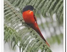 灰喉山椒鸟:共有8个亚种。体长18-22厘米。雄鸟头部和背亮黑色,腰、尾上覆羽和下体朱红色,…