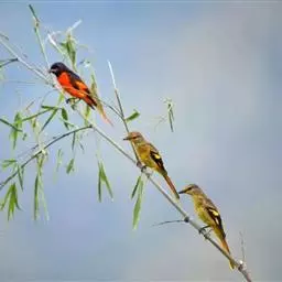 赤红山椒鸟为山椒鸟科山椒鸟属的鸟类,俗名红十字鸟、朱红山椒鸟。雄鸟红色,雌鸟黄色。…
