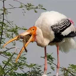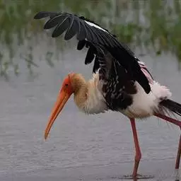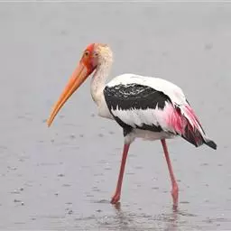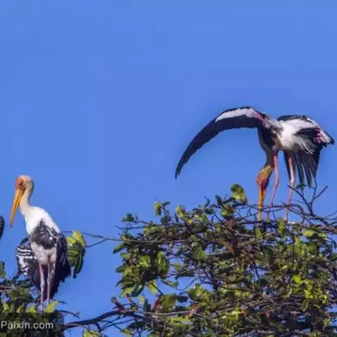 彩鹳:鹳科、鹮鹳属的鸟类。体长93-102厘米,体重2-3.5千克。橙黄色的嘴粗而长,…