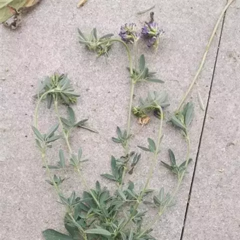 叶具小叶4-6片,托叶比小叶大,叶状,心形,下缘具细牙齿。小叶卵圆形,长2-5厘米,宽1-2.5厘米;花于叶腋单生或数朵排列为总状花序;花萼钟状,深5裂,裂片披针形;花冠颜色多样,随品种而异,但多为白色和紫色,雄蕊 (9+1) 两体。