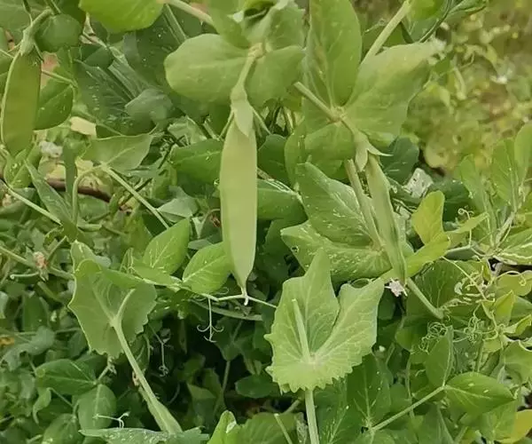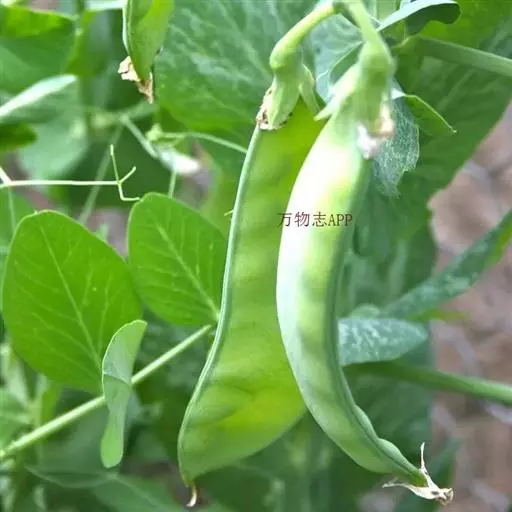 豌豆(学名:Pisum sativum L.)豆科一年生攀援草本,高0.5-2米。全株绿色,光滑无毛,被粉霜。叶具小叶4-6片,托叶心形,下缘具细牙齿。小叶卵圆形;花于叶腋单生或数朵排列为总状花序;花萼钟状,裂片披针形;花冠颜色多样,随品种而异,但多为白色和紫色。子房无毛,花柱扁。荚果肿胀,长椭圆形;种子圆形,青绿色,干后变为黄色。花期6-7月,果期7-9月。