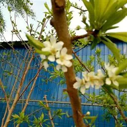 果实球形,稀倒卵形,直径约2.5厘米以上,白色、黄色至黄红色,常具红晕,微被短柔毛;果肉多汁,成熟时不开裂;核卵形或椭圆形,两侧扁平,顶端圆钝,基部对称,稀不对称,表面稍粗糙或平滑,腹稜较圆,常稍钝,背稜较直,腹面具龙骨状稜;种仁味苦或甜。花期3-4月,果期6-7月。2n=16。