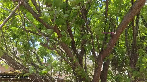 杏树是乔木,高5-8(12)米;树冠圆形、扁圆形或长圆形;树皮灰褐色,纵裂;多年生枝浅褐色,皮孔大而横生,一年生枝浅红褐色,有光泽,无毛,具多数小皮孔。